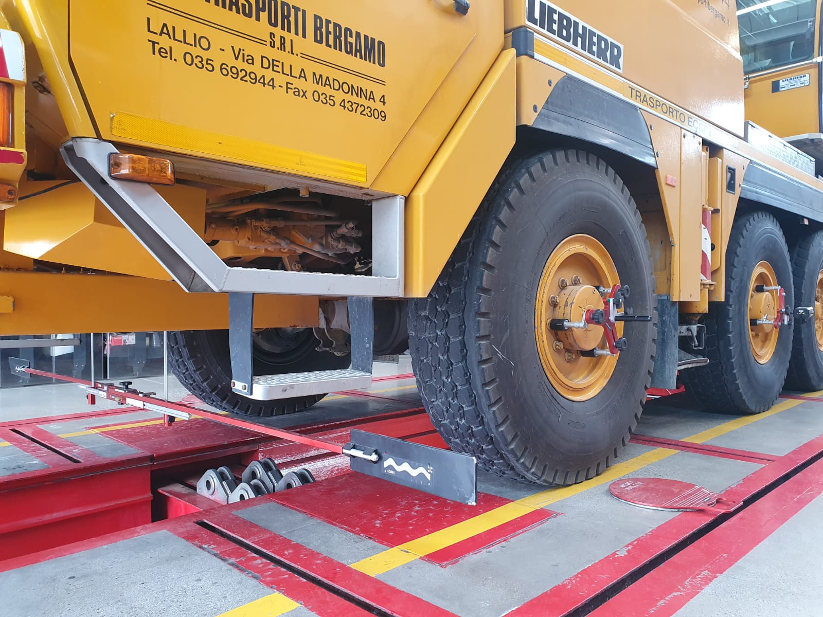 Quando affermiamo di poter allineare qualsiasi mezzo non scherziamo: oggi in officina ci siamo occupati dell’allineamento di una gru Liebherr, una delle autogru più potenti sul mercato. Nessun gigante della strada ci spaventa!